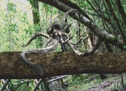 The squibbon is an arboreal, highly intelligent, octopus-like terasquid from the Northern Forest of Novopangea, 200 million AD, in The Future is Wild. It spends all its life high in the canopy, far more flexibly-adapted in the treetops than any animal ever.